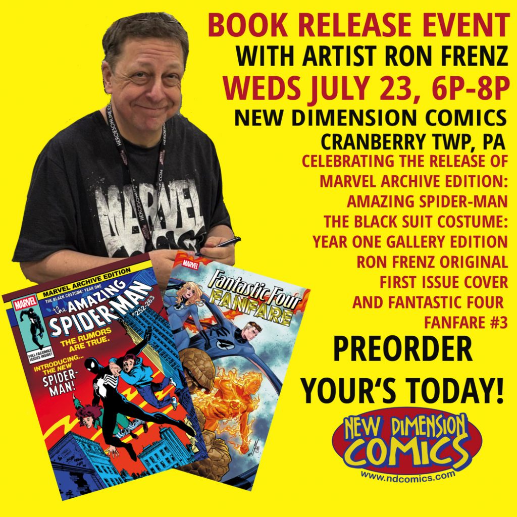 Weds: July 23rd: 6-8pm RON FRENZ will be at the Cranberry Twp. location to celebrate the release of Marvel Archive Edition: Amazing Spider-Man – The Black Costume: Year One Gallery Edition Ron Frenz Original First Issue Cover and FANTASTIC FOUR FANFARE #3. As a cool bonus deal, if you preorder this AMAZING archive edition, we […]