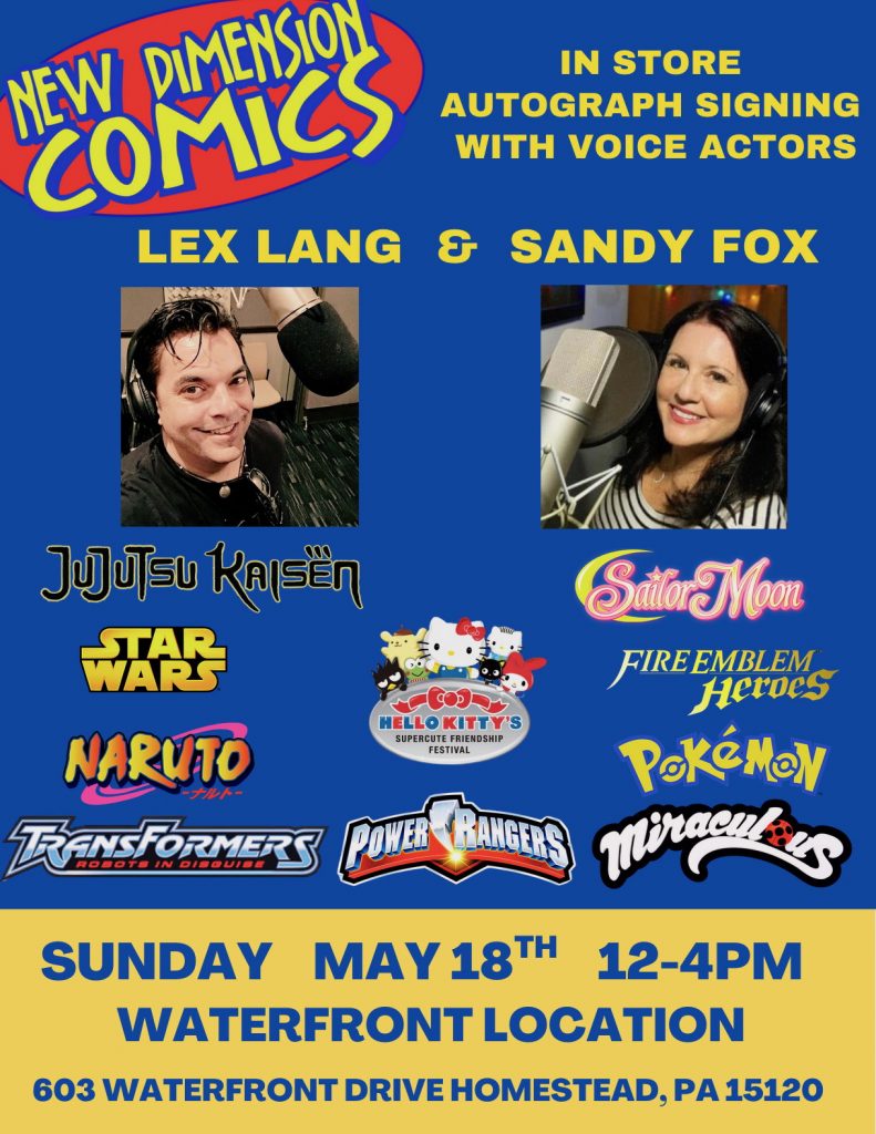 Sunday May 18th 12p – 4p @ our Waterfront Location Meet Pittsburgh’s Sandy Fox and her husband Lex Lang Both of these extremely talented voice actors will be at the shop with prints for purchase of the characters they voiced and will sign items you bring in as well! Sandy is best known as the […]
